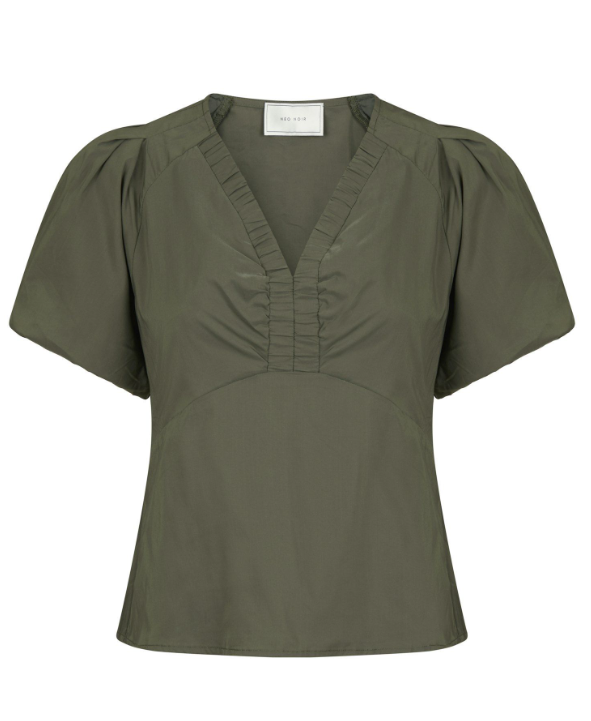 Bluse i bomullsmix poplin med ermer som stopper over albuen og skjult glidelås.