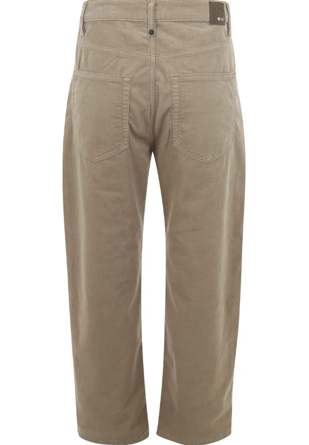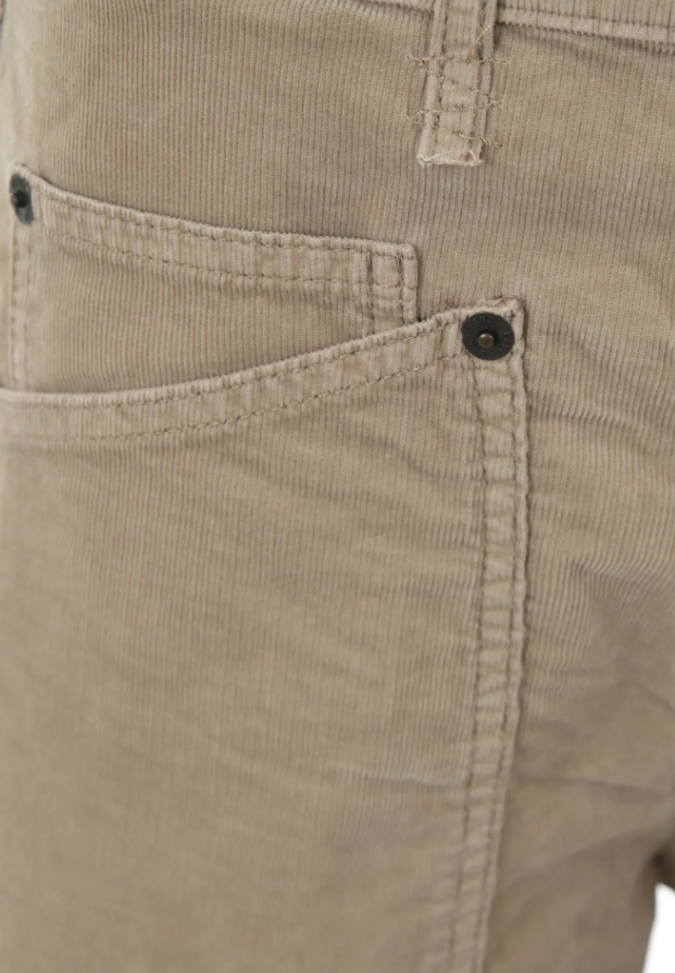Myk og behagelig bukse i smalstripet cordfløyel. Baggy design med store lommer. Noe kortere benlengde; 70 cm i str. 34.