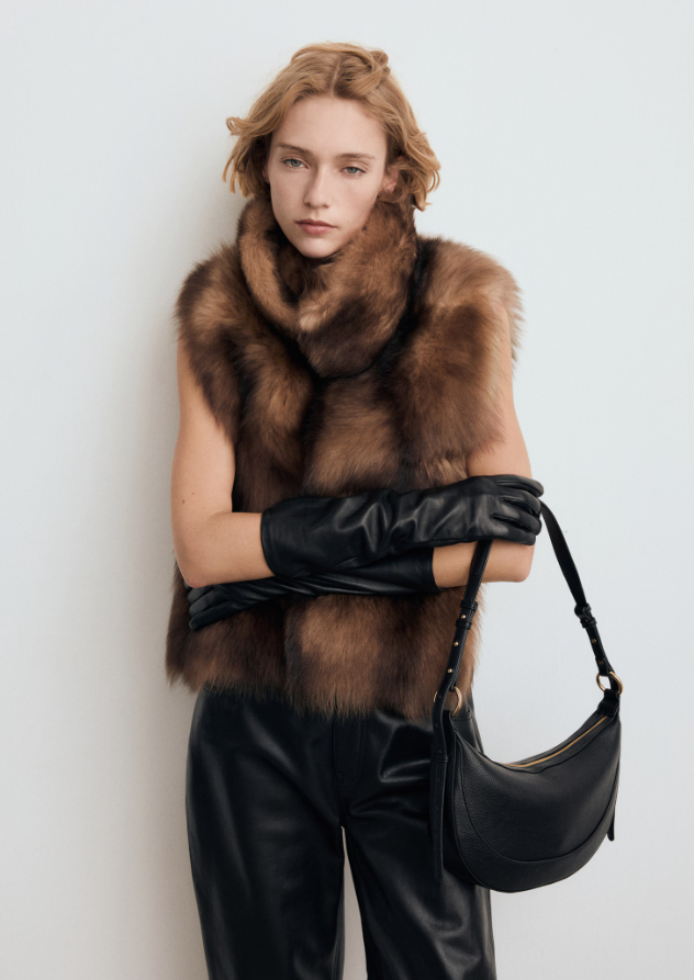 Oval skulderveske med justerbar skulderstropp. Glidelåslukking.