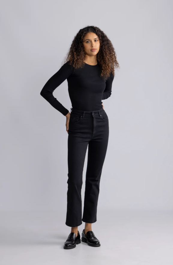 Malena er en klassisk 5-lommers jeans med høyt liv, rette ben med smal sleng og ankellengde. Den har god stretch og er komfortabel å ha på.