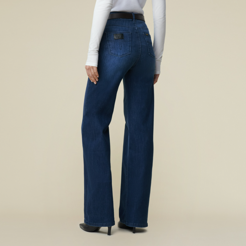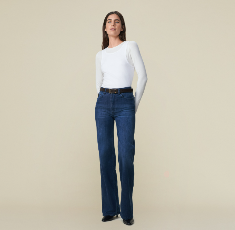Dette er bestelger fra Lois i en mørkeblå vask. Buksen har en slim passform med wide-flare, og har full benlengde. Buksen har en komfortabel utforming med høyt liv, god stretch og vide ben. Den har fem lommer og beltehemper i linningen. Lukkes med knapp og skjult glidelås i front. Buksen sitter smalt over rumpe og hofte. Beltehemper i linningen og logo-patch bak.