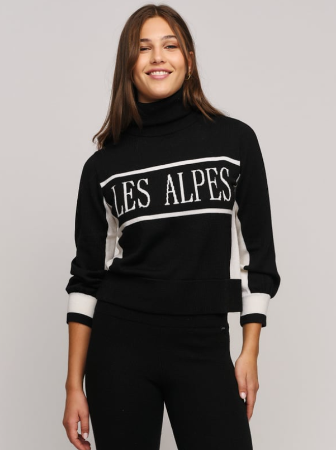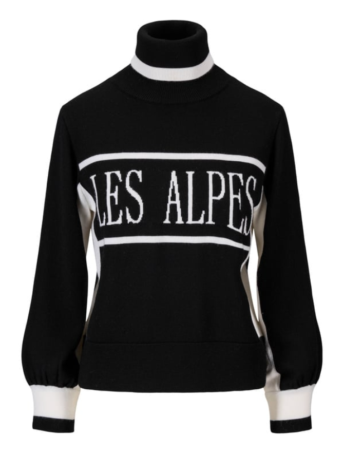Maud Merino Sweater kombinerer komfort og stil med sin rette passform og figursydde nederkant. Den koselige turtlenecken gir varme, mens kontrastpanelet foran med skriften "Les Alpes" gir et unikt og trendy preg. Denne merinogenseren er perfekt for uformelle utflukter eller lag-på-lag i kaldere måneder, noe som gjør den til et allsidig tillegg til garderoben din.