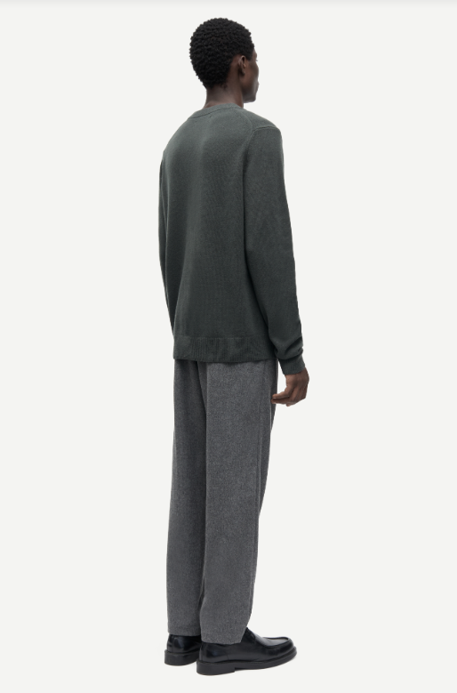 Avslappet genser i merinoull med lange ermer og rund hals. Dette produktet er RWS-sertifisert. RWS sikrer at kravene til dyrevelferd og arealforvaltning oppfylles, fra gård til sluttprodukt. Modellen vår er 186 cm høy og har på seg størrelse large.