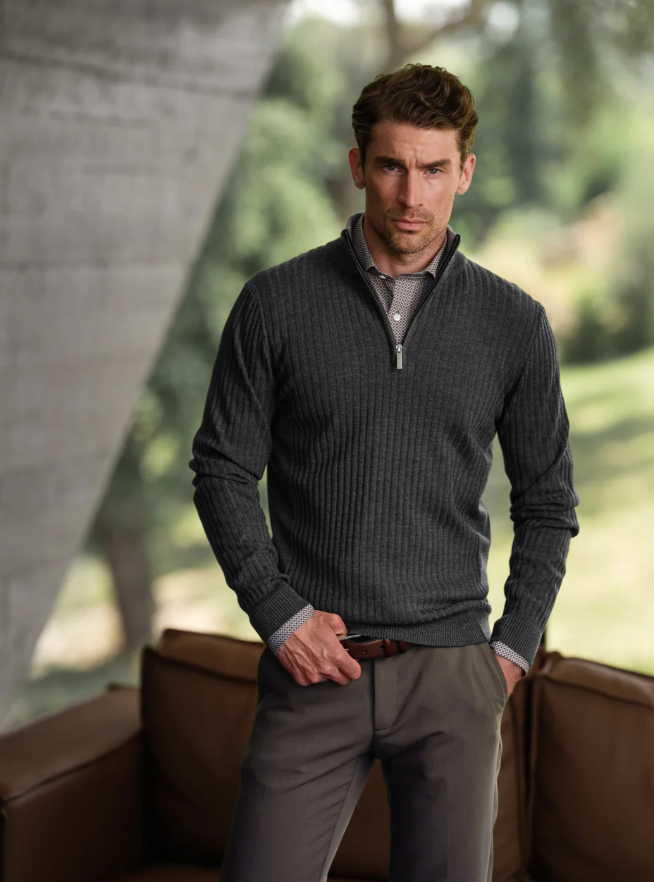 Jamie Zip er en ny genser-modell denne sesongen i supersoft merinoull kvalitet. Den holder deg varm gjennom sesongen, samtidig som den har gode pusteegenskaper. Genseren er strikket i klassisk ribbestrikk og passer supert til både hverdag og fest. Den har halvhøy hals med zip og kontrast-farge i halsen. Passer veldig fint å bruke over skjorter.