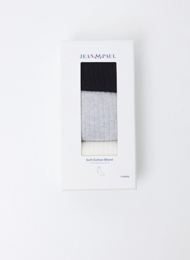 3 pk med ribbestrikkede sokker i behagelig bomullsblanding med elastan. Sokkene har en liten logo på ribkanten og leveres i lekker gaveeske.