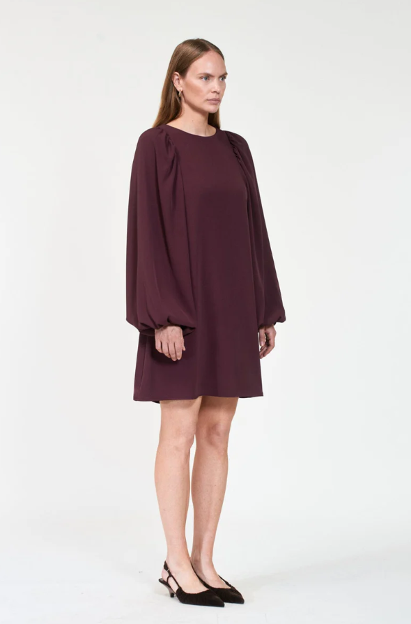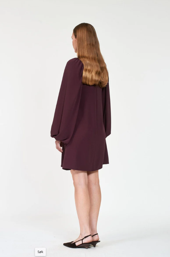 Elegant minikjole med en lett A-linjeskåret fasong og brede, voluminøse ballongermer. Kjolen har en enkel nøkkelhullslukking bak.