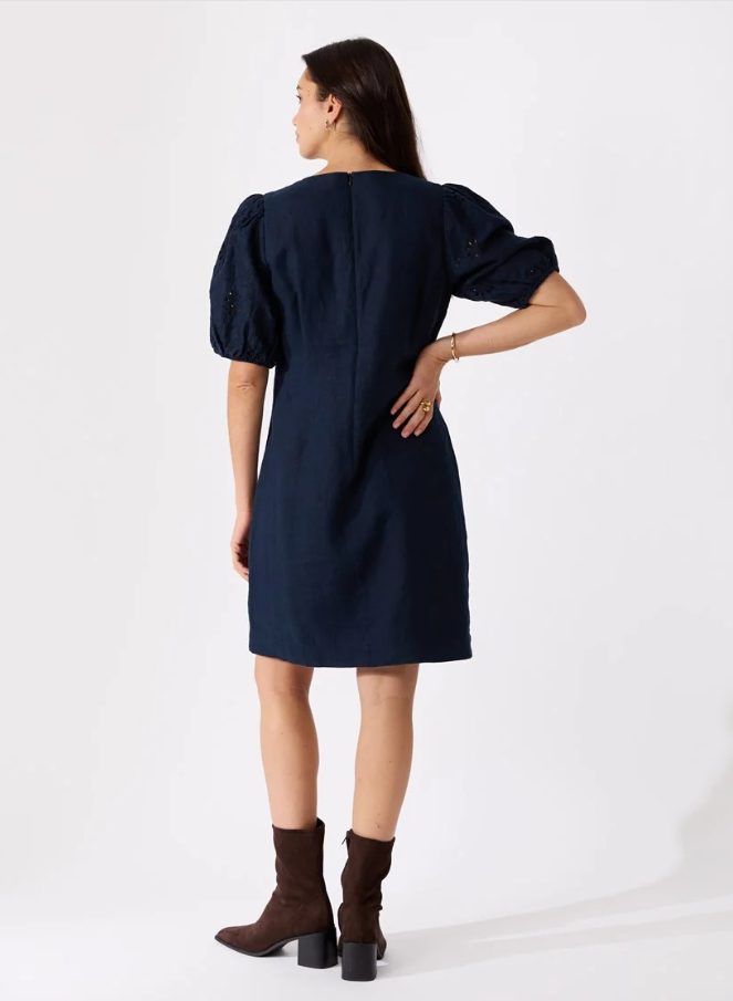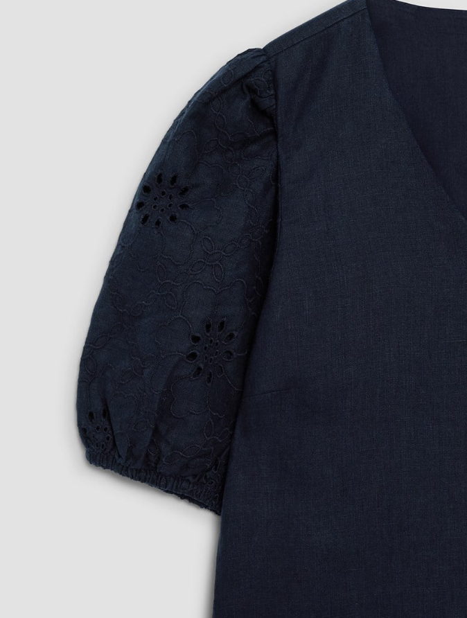 kort pufferm i brodert lin