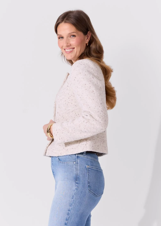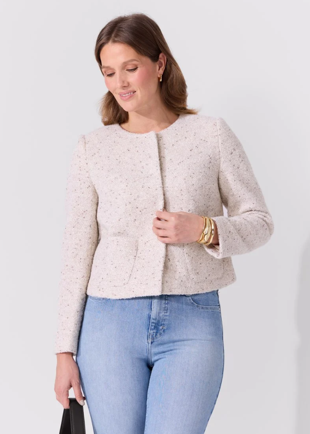 Jakke i vevet melert bouclè kvalitet.