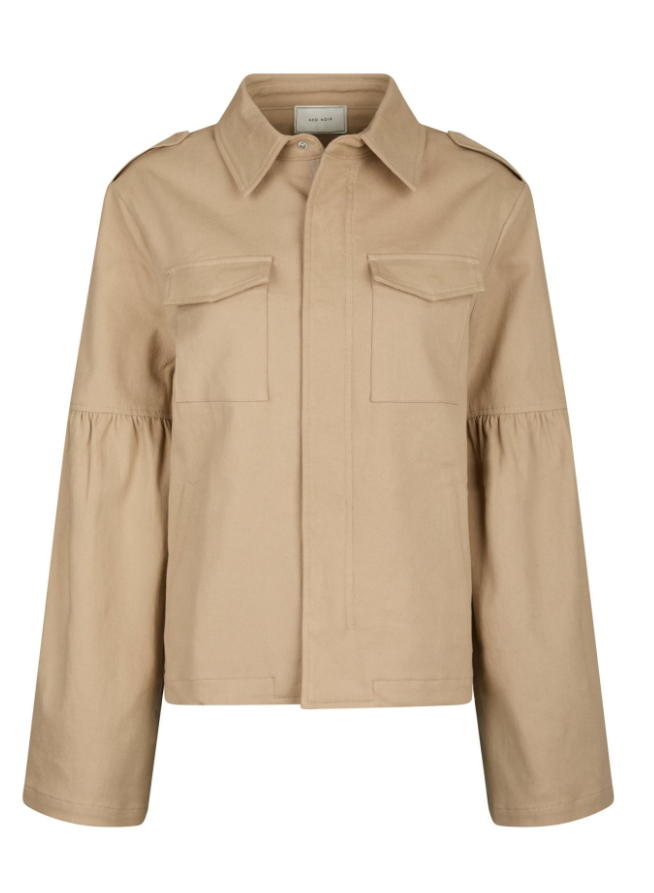 Kul militærinspirert jakke med lommedetaljer og glidelås foran samt vide ermer. Kvaliteten er myk og vasket med litt stretch for en behagelig passform. Modellen er 176 cm høy og bruker str. 36.