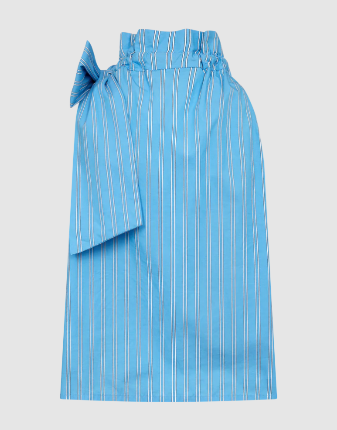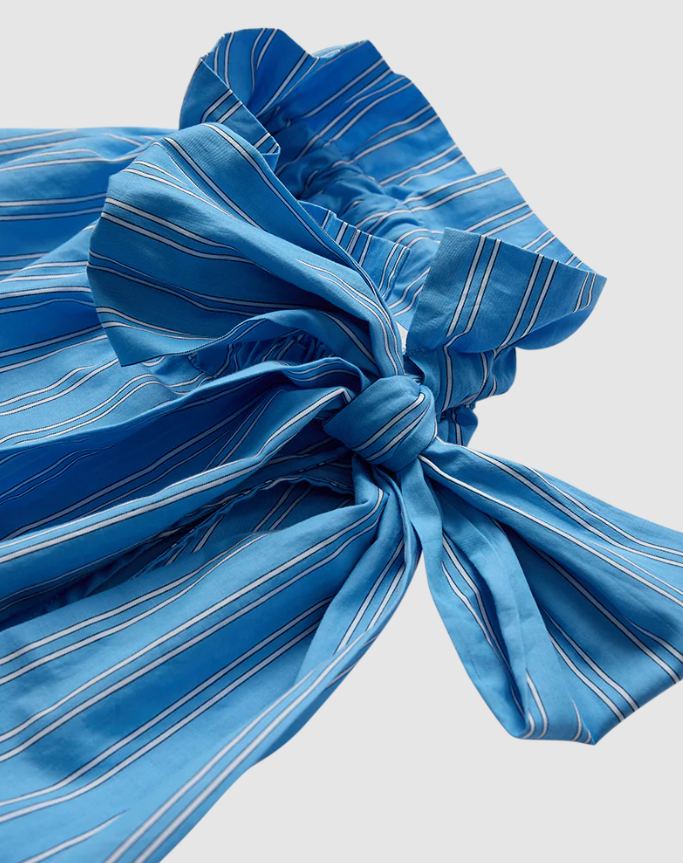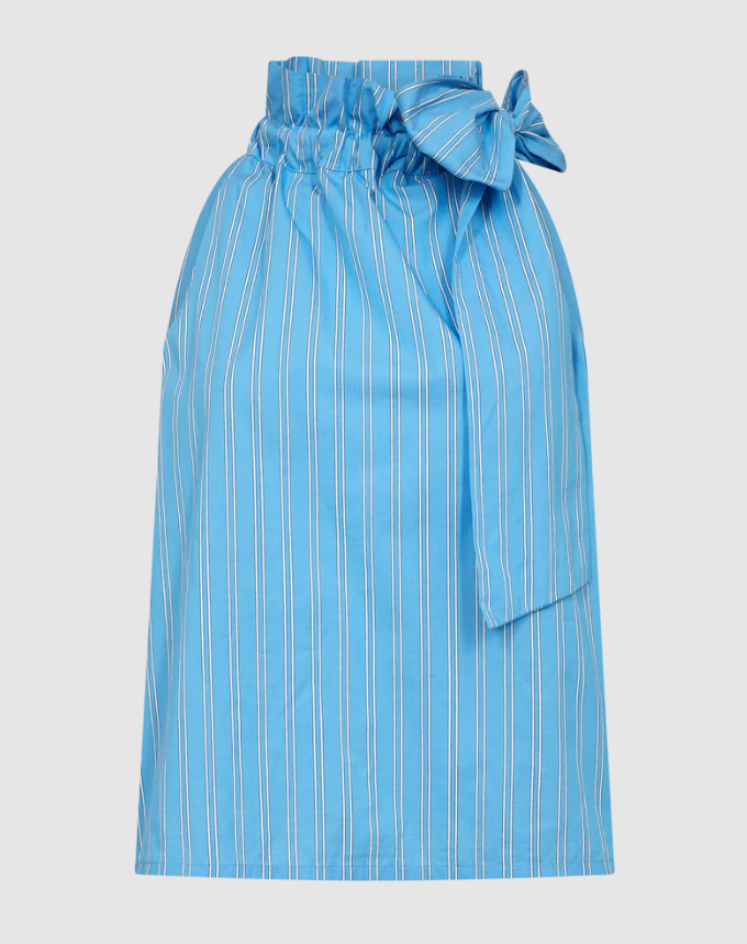 Halterneck-topp med striper, løs passform og rynket krage med båndstropper for et elegant utseende.
