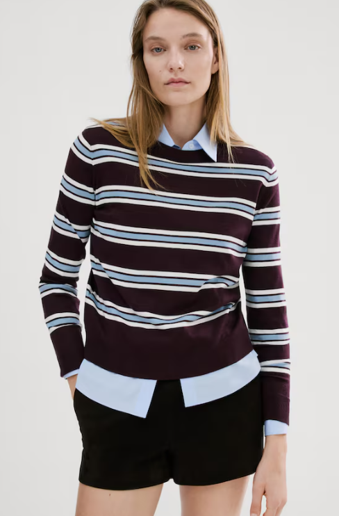 Stripete genser med rund hals.