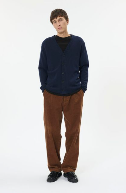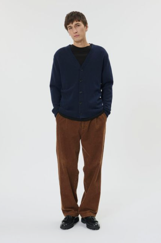 Cardigan med V-hals, knappelukking og ribbestrikkede kanter. Rett silhuett og myk finish gir et avslappet, sofistikert uttrykk.