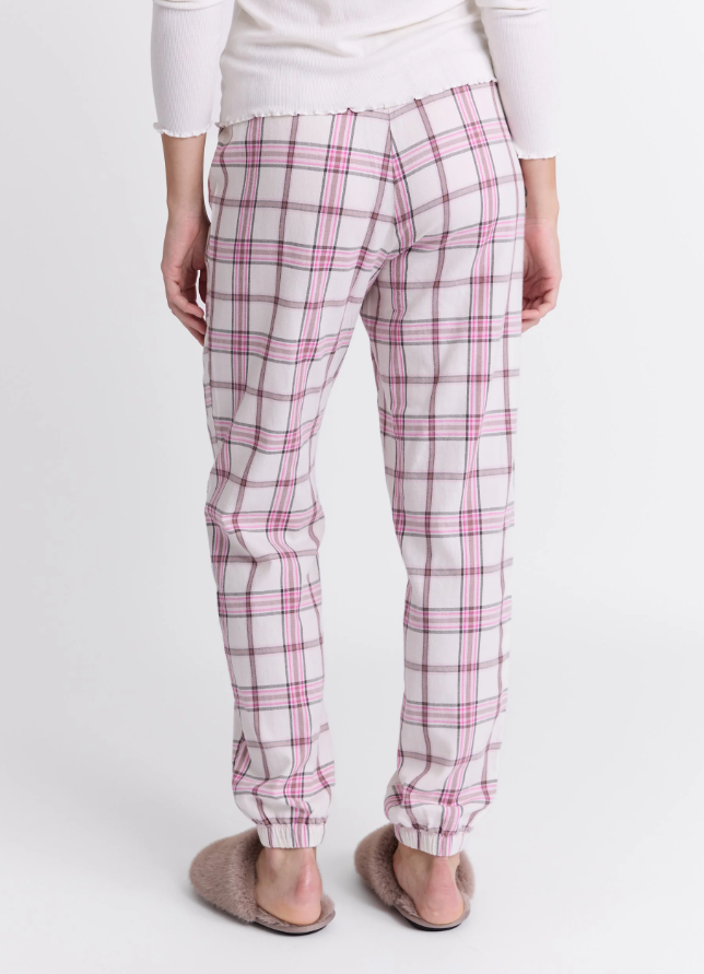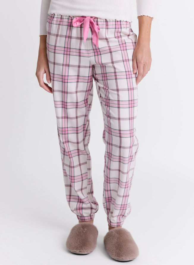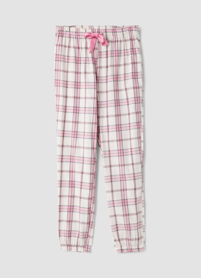 Rutet pysjbukse med elastikk og satengbånd i livet.