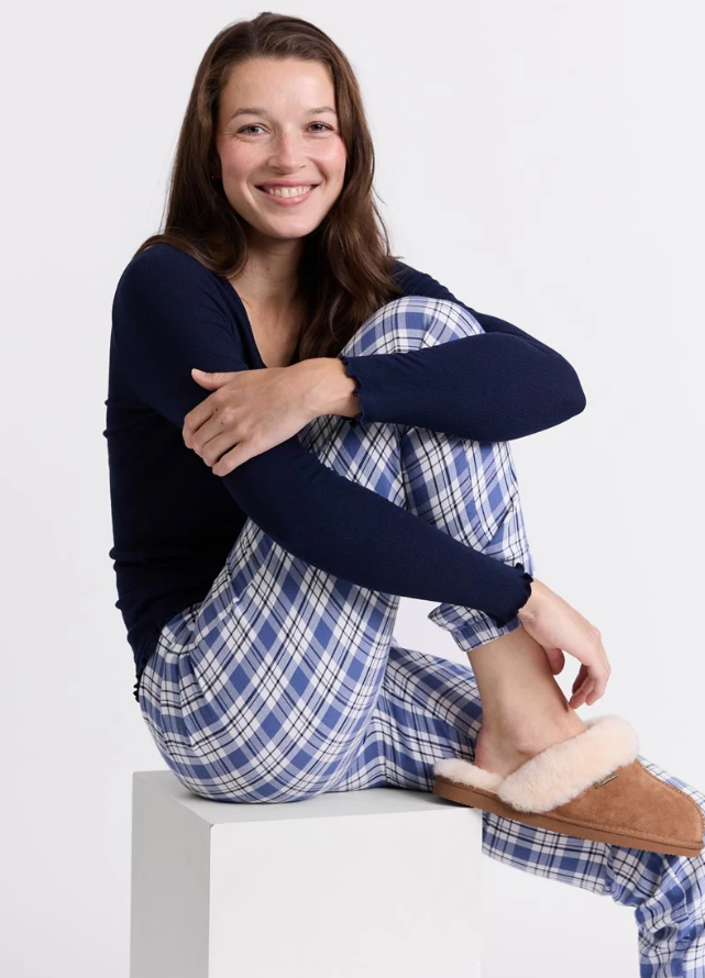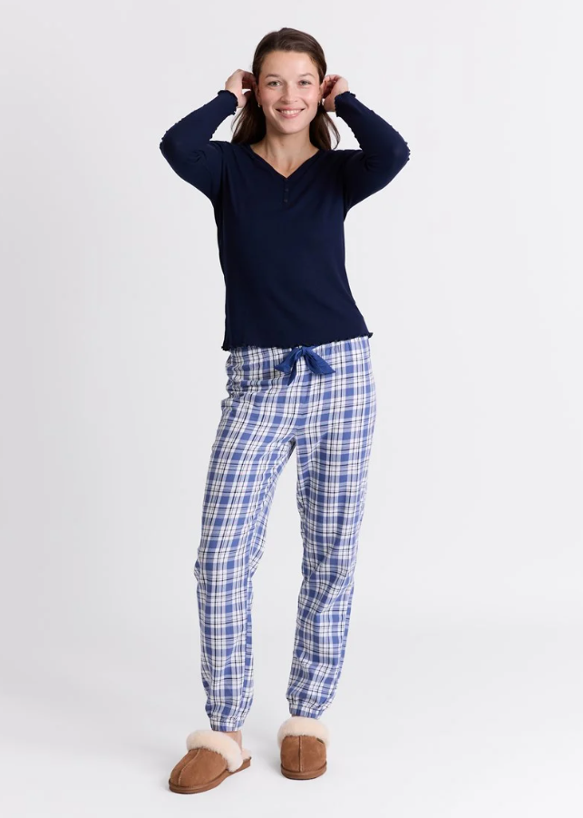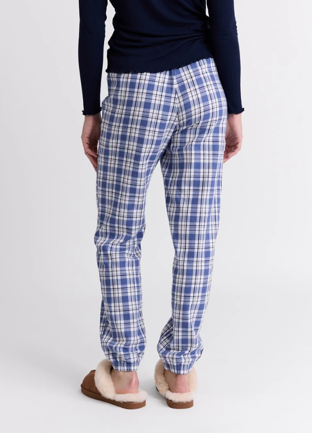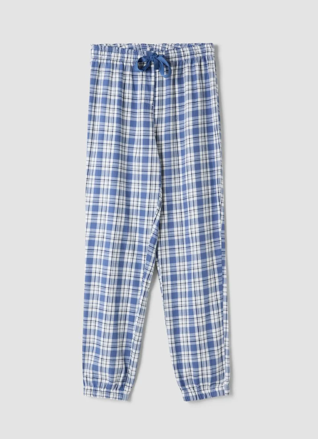 Rutet pysjbukse med elastikk og satengbånd i livet.