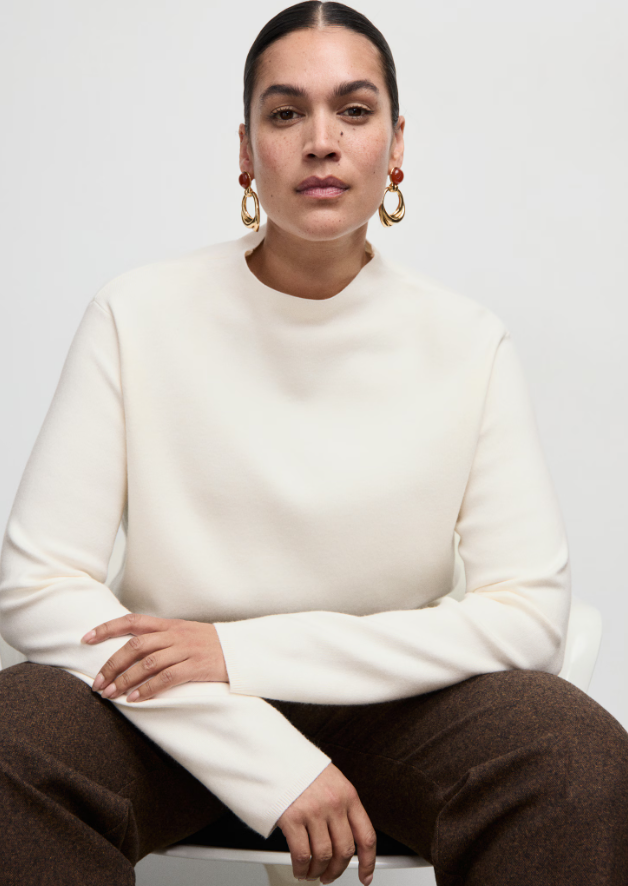 Finstrikket genser med perkins-hals. Rett i fasongen.