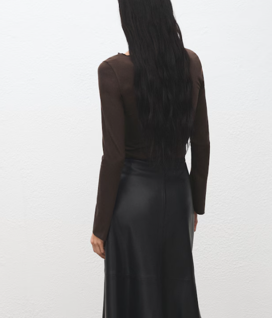 Figursydd modell med båthals og lange, utsvingte ermer.
