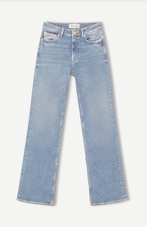 Jeans med medium høyt liv, smal passform og utsvingte ben. Knapp- og glidelåslukking foran. Femlommersmodell. Beltehemper. Hovedmateriale laget av en økologisk bomullsblanding. Innersømlengden er 81 cm i størrelse 27/32. Modellen er 177 cm høy og bruker størrelse 27/32.