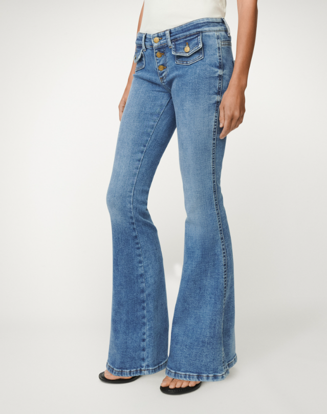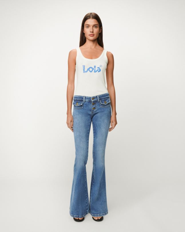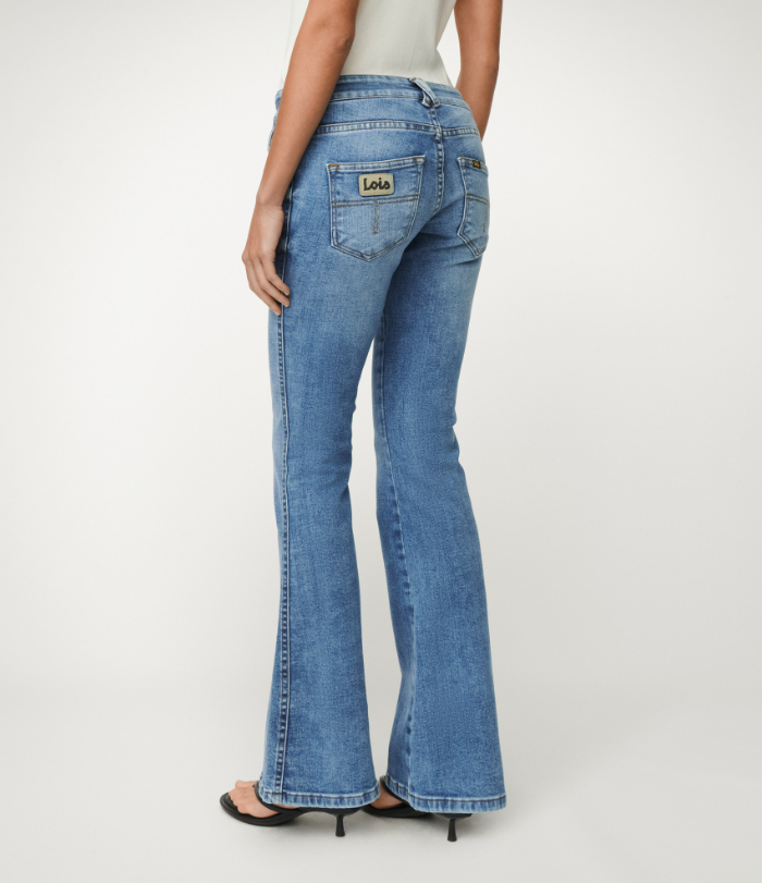 Yoko er en av våre originale Lois-bukser fra 60-tallet med signaturlommer i firkant foran. Den har høy midje, utsvingte ben og har litt stretch.