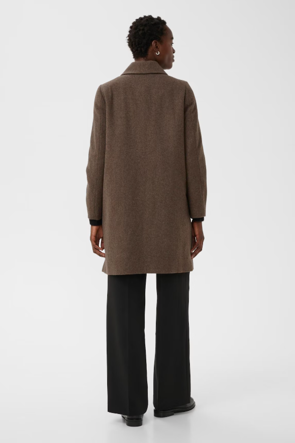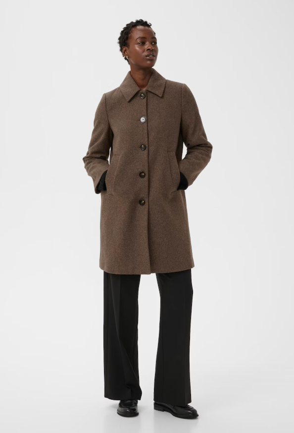 En tidløs ullkåpe med et stilrent og minimalistisk design. Den strukturerte silhuetten, klassiske kragen og knappelukkingen gir både eleganse og varme. Den raffinerte stilen gjør den til et allsidig valg, perfekt for både hverdags- og formelle antrekk.